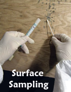 Surface sampling, like swab tests and tape-lifts, are used to identify a mold type at a specific location. This sampling technique is useful in ruling out possible discolorations or staining that sometimes exhibit mold like visual characteristics. The samples are analyzed to determine the presence (quantity and type) of mold and or fungi, resulting from water intrusion.